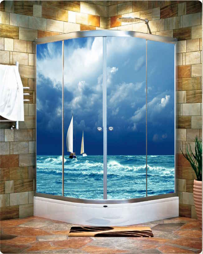 DENİZ YELKENLİ SAHİL 3Boyutlu Kendinden Yapışkanlı Duşakabin Kaplama Folyosu