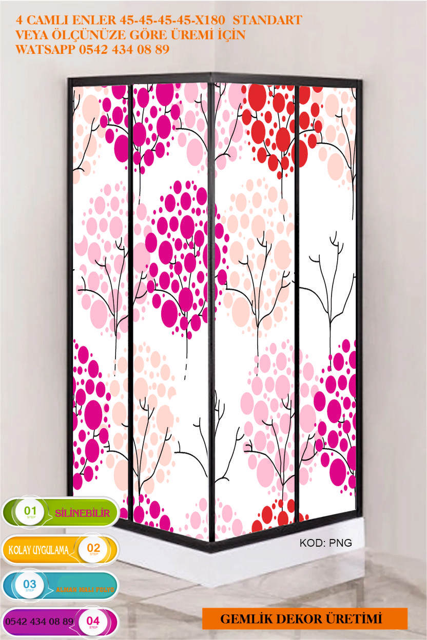 3LÜ ÇİÇEK DESEN DUŞAKABİN VE KAPI KAPLAMA ÖLÇÜYE ÖZEL ÜRETİM