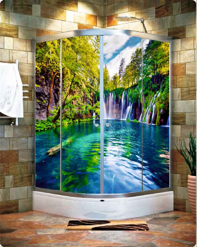 AKARSU ŞELALE DOĞA ORMAN 3Boyutlu Kendinden Yapışkanlı Duşakabin Kaplama Folyosu