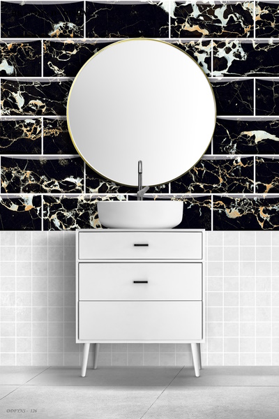 3D Kendinden Yapışkanlı Tuğla Desen Siyah Renk Beyaz Sarı Renk Detaylı Damarlı Mermer Model Banyo Duvarı Folyo Kaplama
