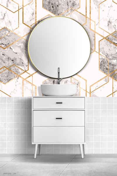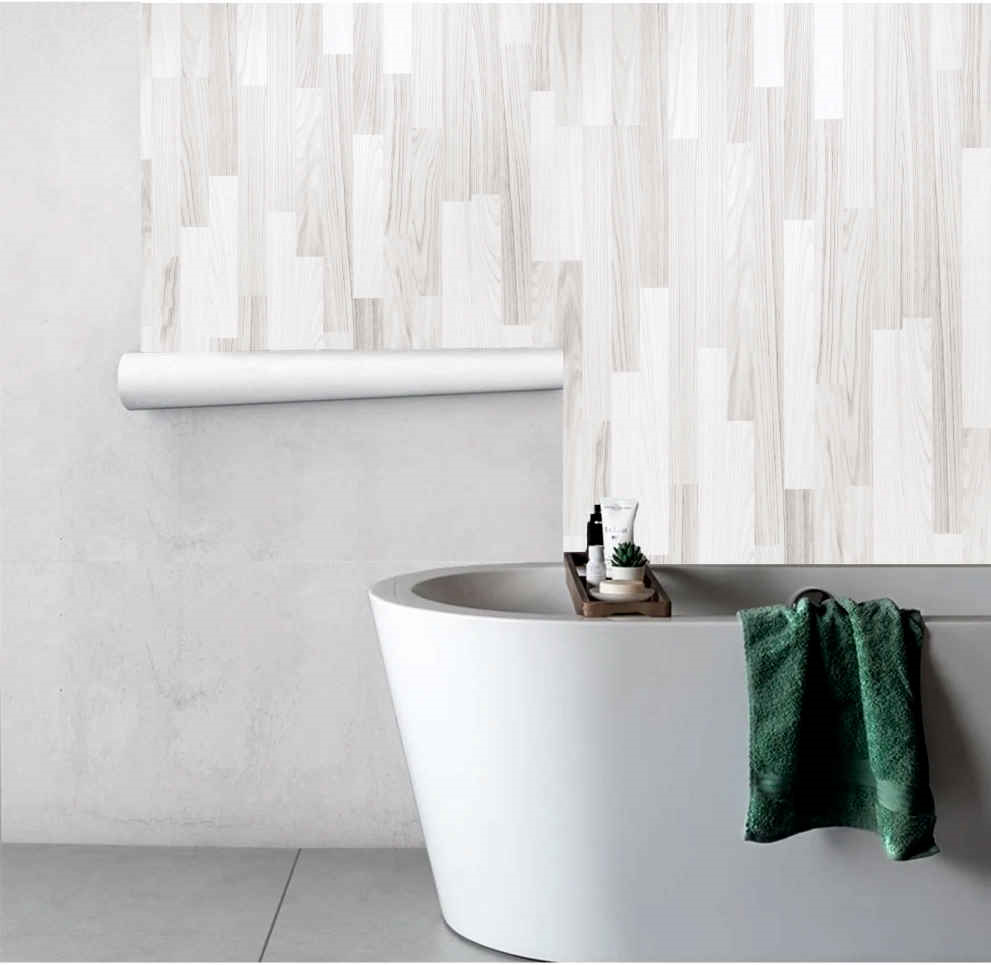 Kendinden yapışkanlı banyo duvarı kaplama folyomuz; suya dayanıklı ve silinebilirdir.