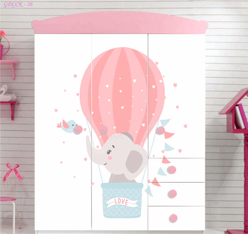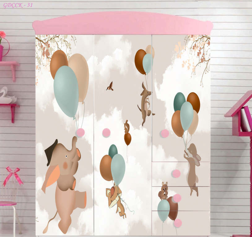 BULUTLU UÇAN BALONLU ÇOCUK DOLAP KAPLAMA