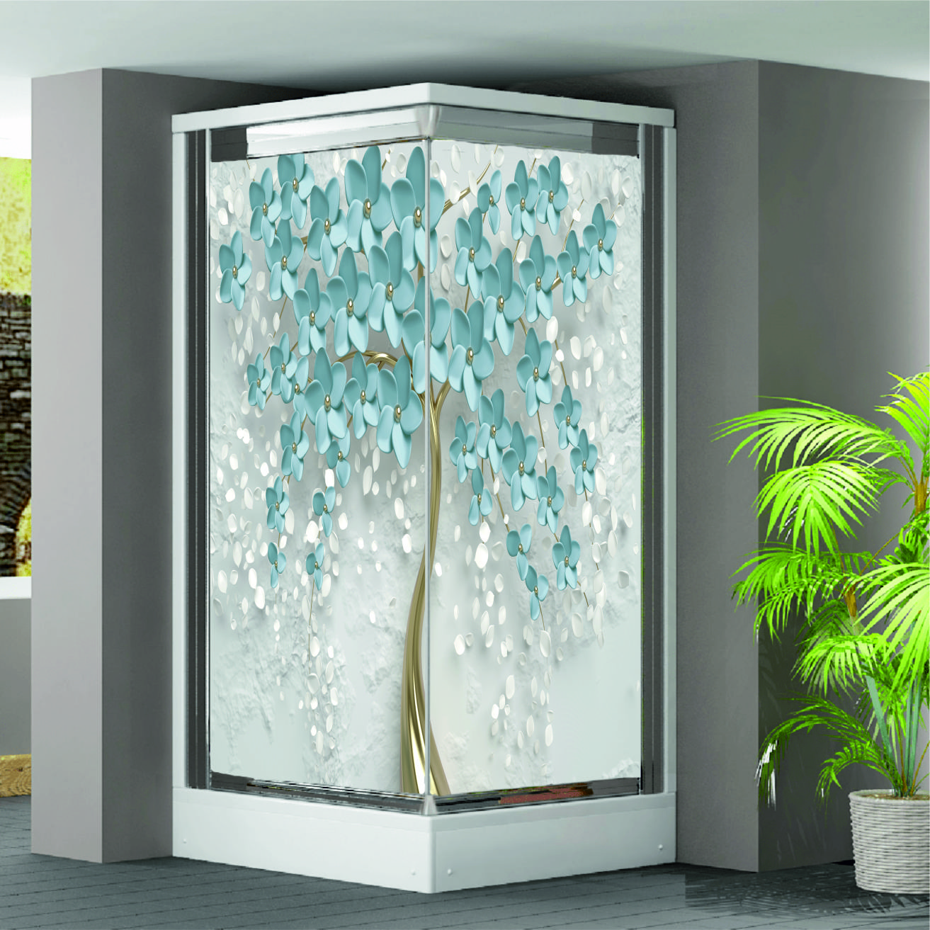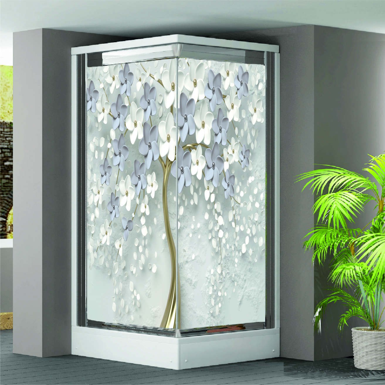 ÇİÇEK AĞACI DESENLİ DUŞAKABİN KAPLAMA