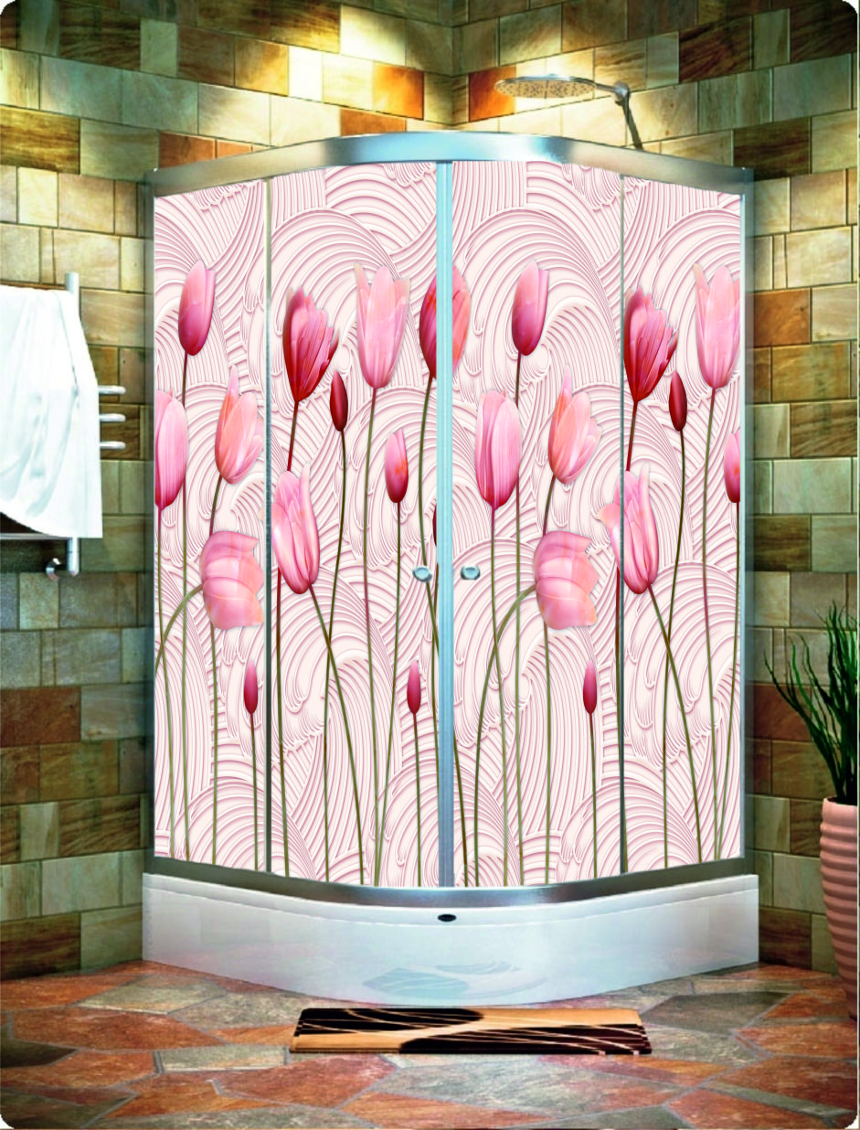 DAMASK ZEMİN- PEMBE LALE -ÇİÇEK DESENLİ DUŞAKABİN KAPLAMA