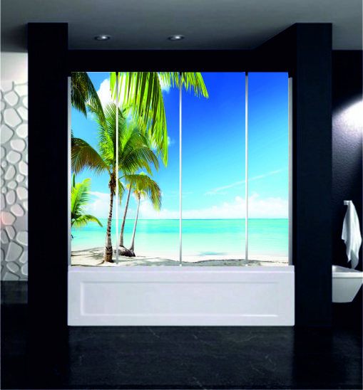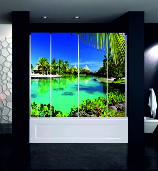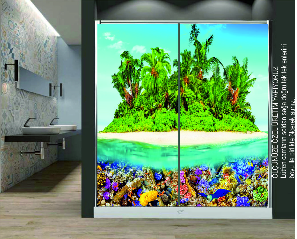 DENİZ-PALMİYE- PALMİYE EVLERİ DESENLİ DUŞAKABİN KAPLAMA