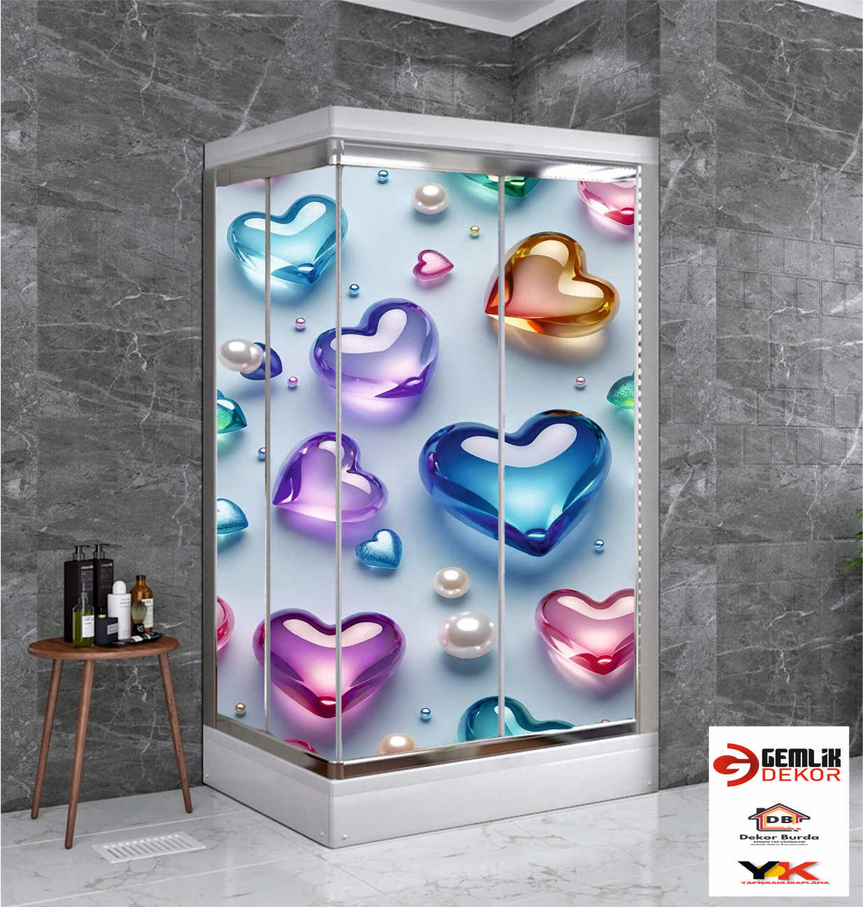 İNCİLİ KALPLİ DUŞAKABİN KAPLAMA