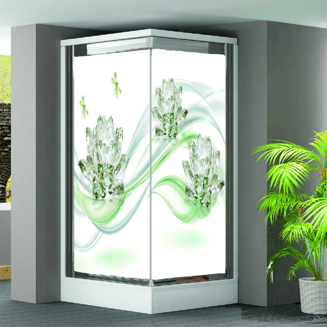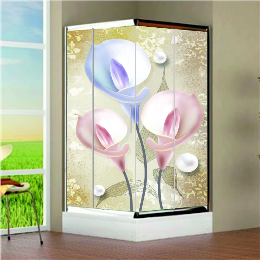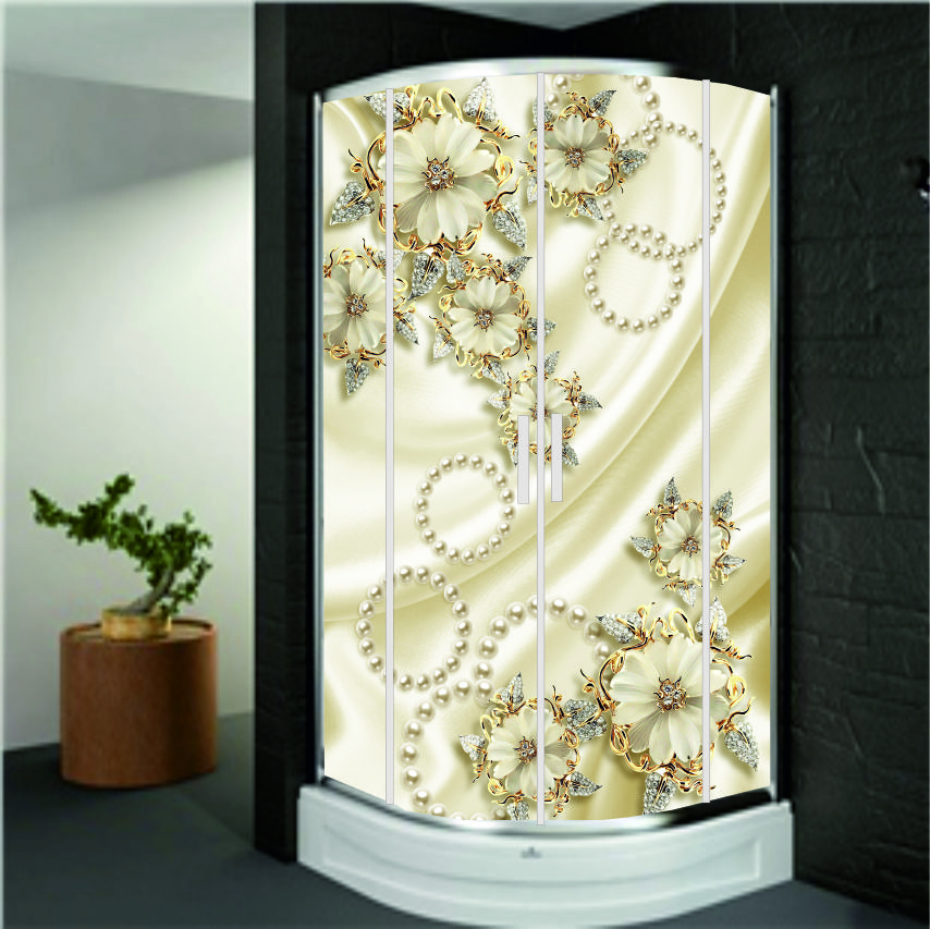 KELEBEKLİ İNCİLİ KREM TON ÇİÇEK DESEN DUŞAKABİN CAMI KAPLAMA
