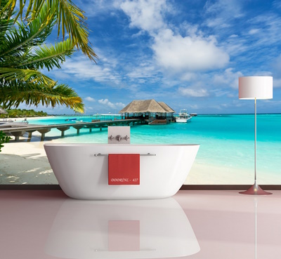 Kendinden yapışkanlı banyo duvarı kaplama folyomuz; suya dayanıklı ve silinebilirdir.