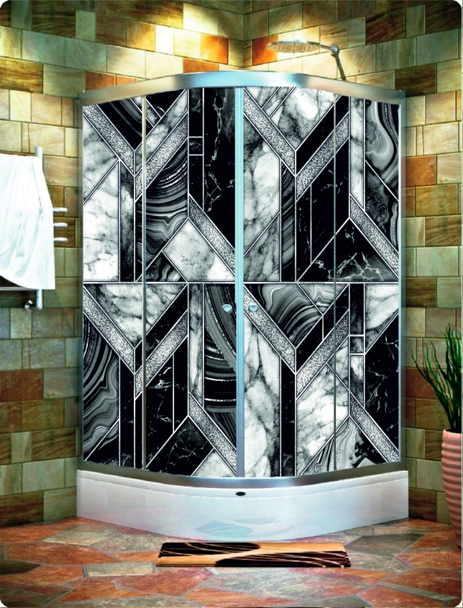 Kendinden yapışkanlı 4 parça duşakabin kaplamamız silinebilir ve suya dayanıklıdır
