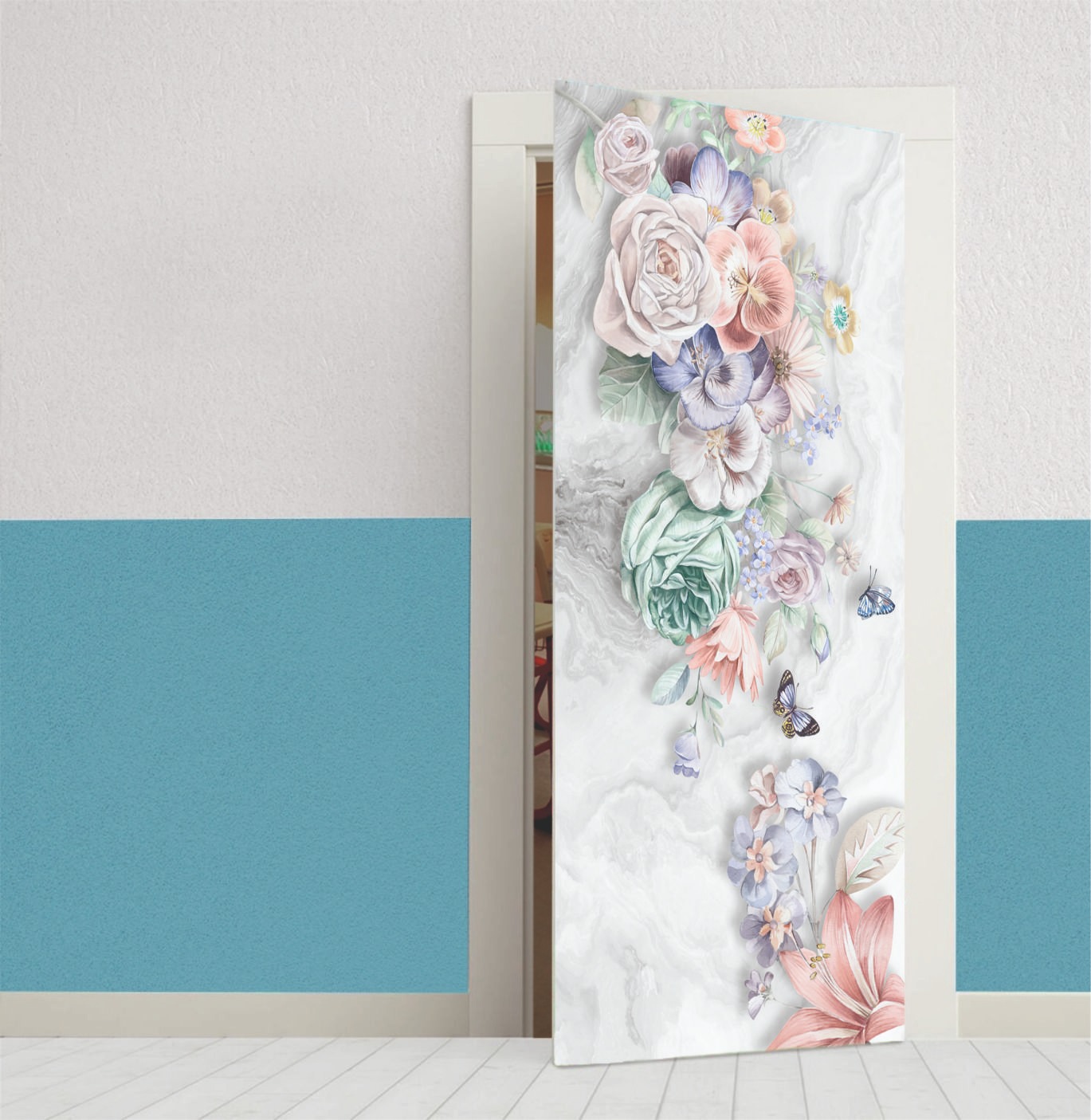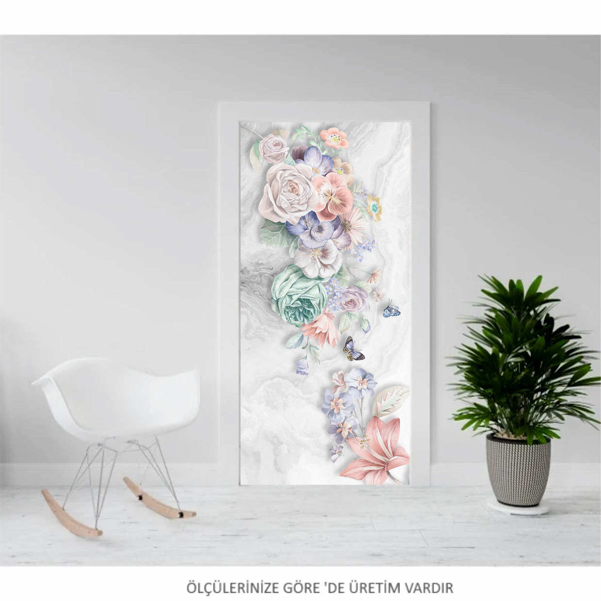 MOR ÇİÇEKLİ KAPI KAPLAMA