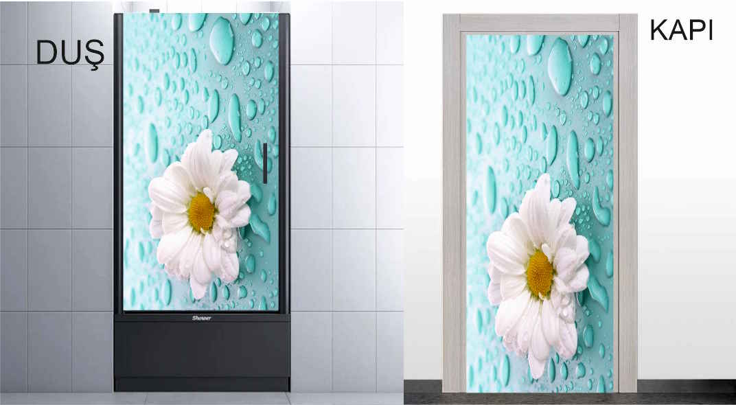 3Boyutlu Kendinden Yapışkanlı 4 Camlı Duşakabin Kaplama Folyosu Beyaz Papatyalar Mavi Gökyüzü Model
