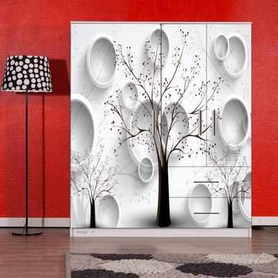 PEMBE AĞAÇ DESENLİ ÇOCUK DOLAP KAPLAMA