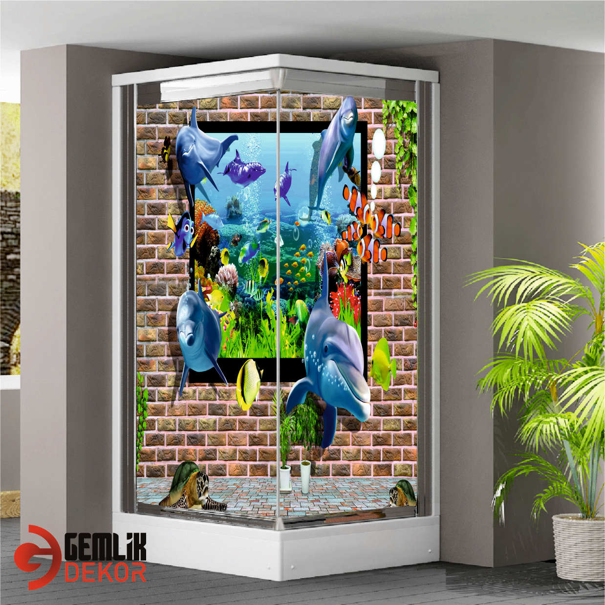 pembe BALIKLI DESENLİ DUŞAKABİN KAPLAMA