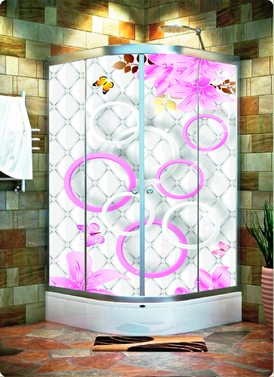 BEYAZ HALKA*ÇİÇEK-KELEBEK DESENLİ DUŞAKABİN KAPLAMA