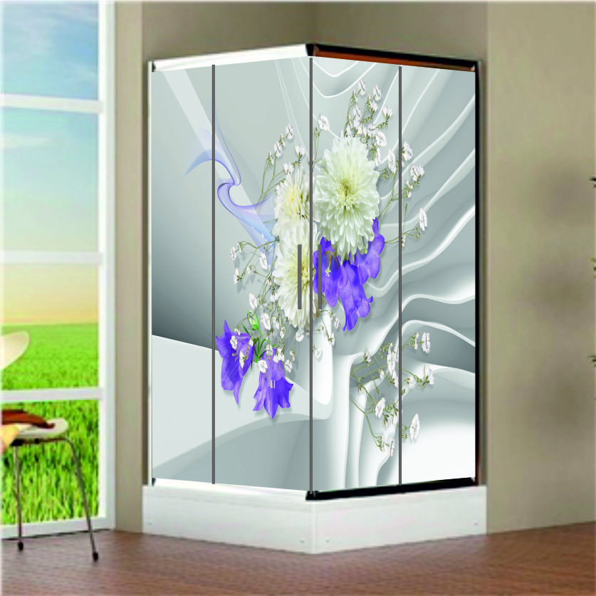 SİYAH ÜZERİNE ÇİÇEK DESEN DUŞAKABİN KAPLAMA