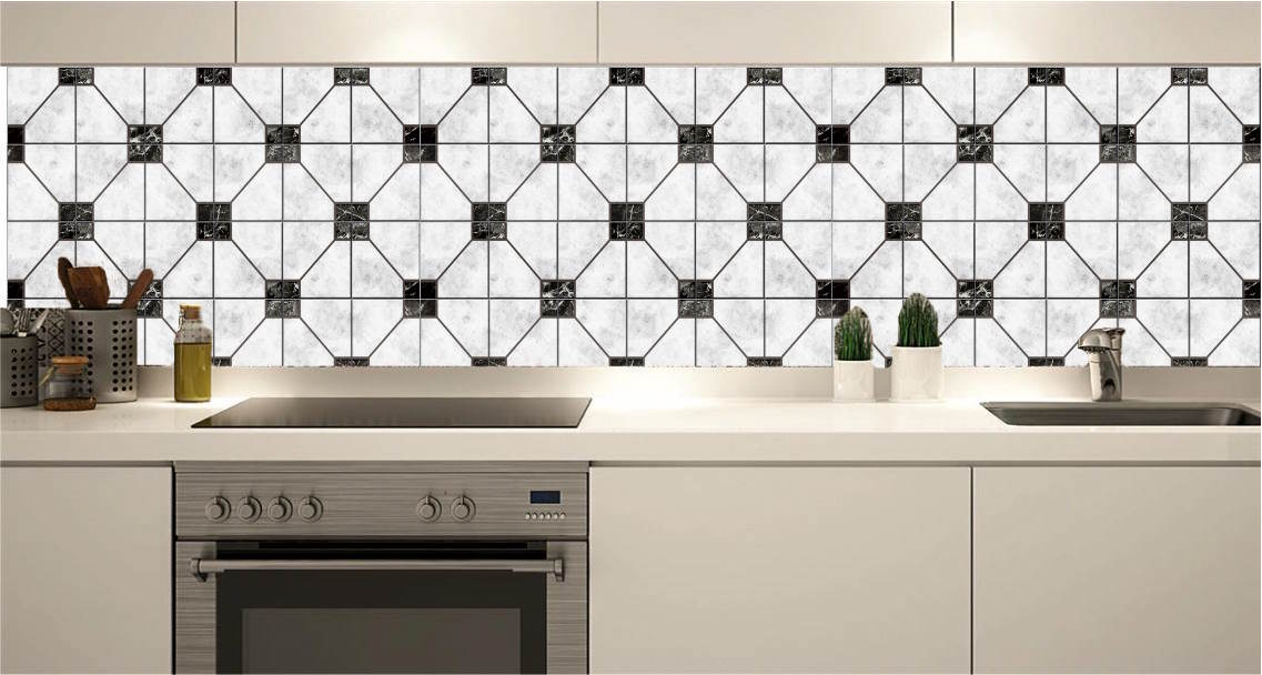 KENDİNDEN YAPIKANLI - ÖZEL TASARIM ÇİNİ MERMER GEOMETRİK DESEN 3D MUTFAK ARASI SERAMİK ÜSTÜ FOLYO KAPLAMA