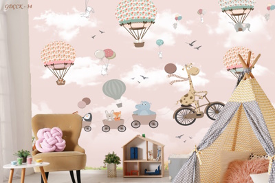 3D Çocuk Odası Yapışkanlı Folyo Kaplama Ağaç Tilki Geyik Arı Kuş Manzara Pattern Model