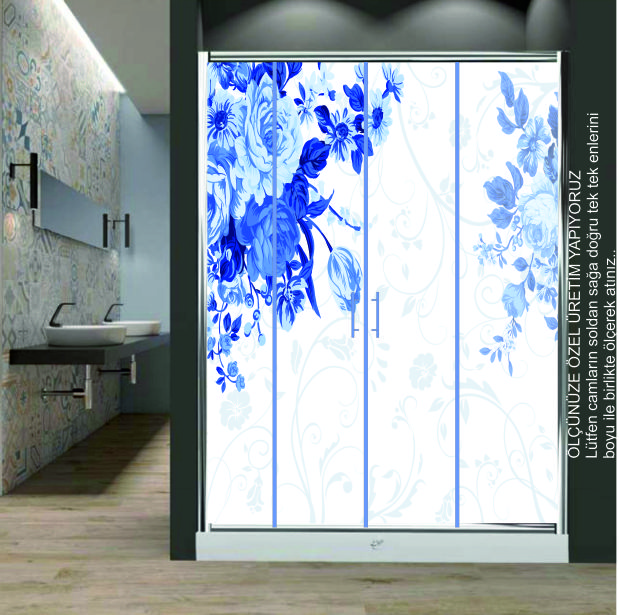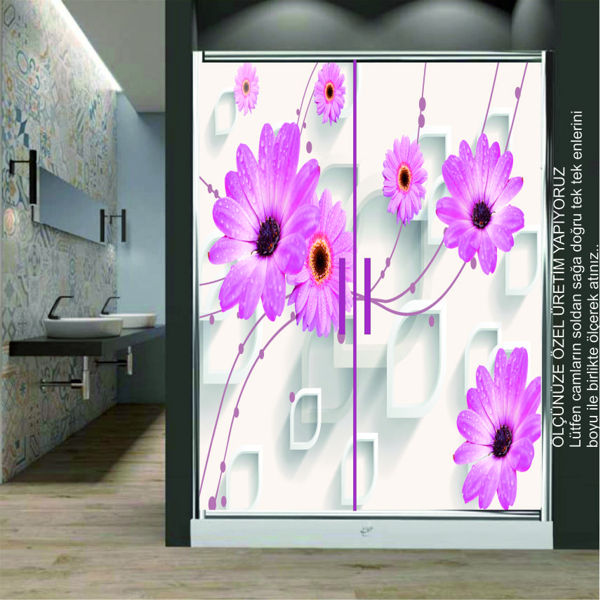 BEYAZ ZEMİN- RENGARENK ÇİÇEK DESENLİ DUŞAKABİN KAPLAMA