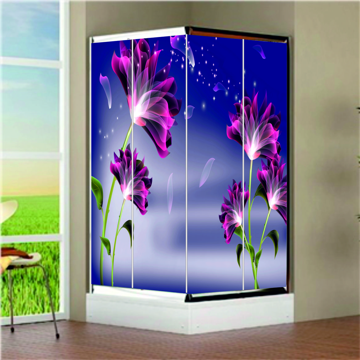 BEYAZ ZEMİN-ÇİÇEK DESENLİ DUŞAKABİN KAPLAMA