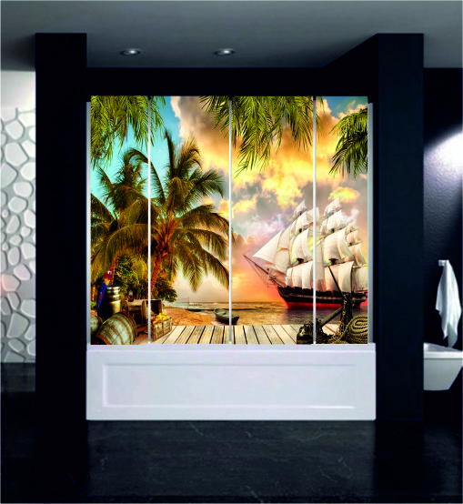 DENİZ YELKENLİ SAHİL 3Boyutlu Kendinden Yapışkanlı Duşakabin Kaplama Folyosu