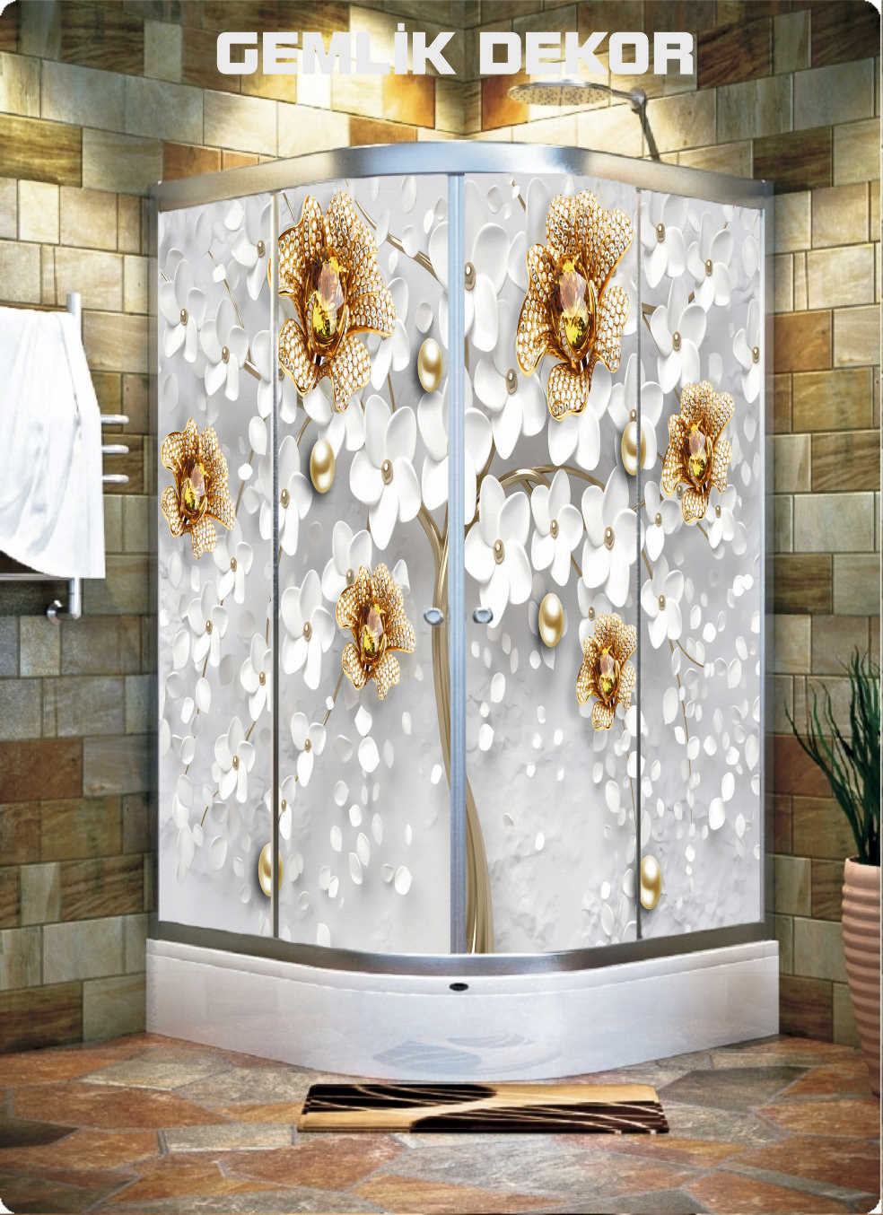GRİ ALTIN VARAK GOLD AGAÇ İNCİ DESEN DUŞAKABİN KAPLAMA