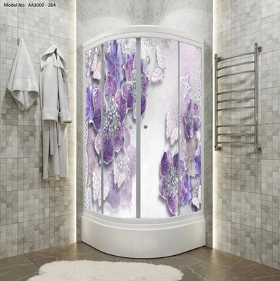 GRİ LİLA PEMBE İNCİ ÇİÇEK DESENLİ DUŞAKABİN CAMI KAPLAMA