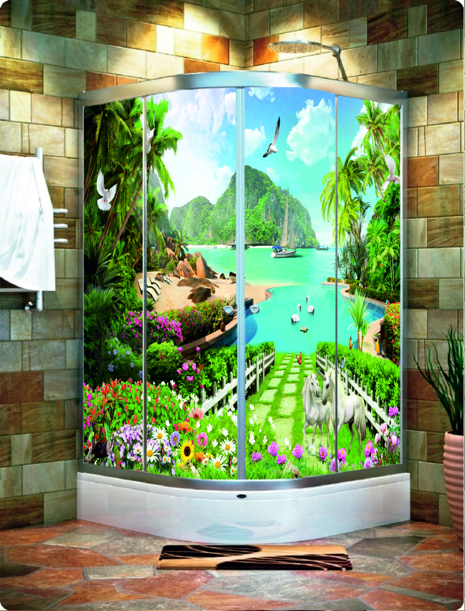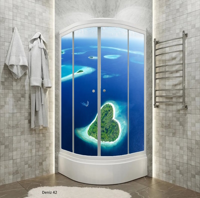 Kendinden yapışkanlı 4 parça duşakabin kaplamamız silinebilir ve suya dayanıklıdır