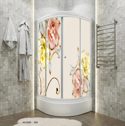KIRMIZI SARI GRİ KUMAŞ EFECKT DESEN ÇİÇEK DUŞAKABİN CAMI KAPLAMA
