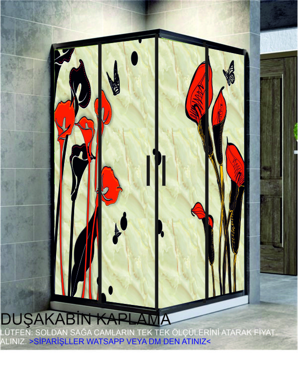 Kendinden yapışkanlı 4 parça duşakabin kaplamamız silinebilir ve suya dayanıklıdır