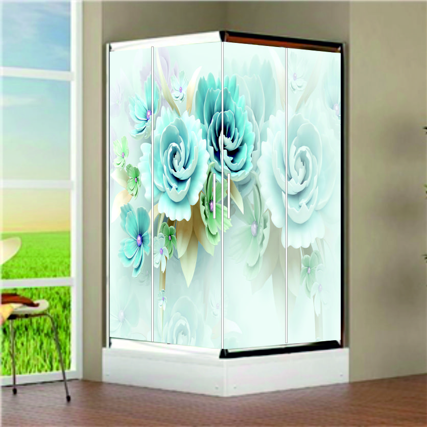 SİYAH ÜZERİNE ÇİÇEK DESEN DUŞAKABİN KAPLAMA