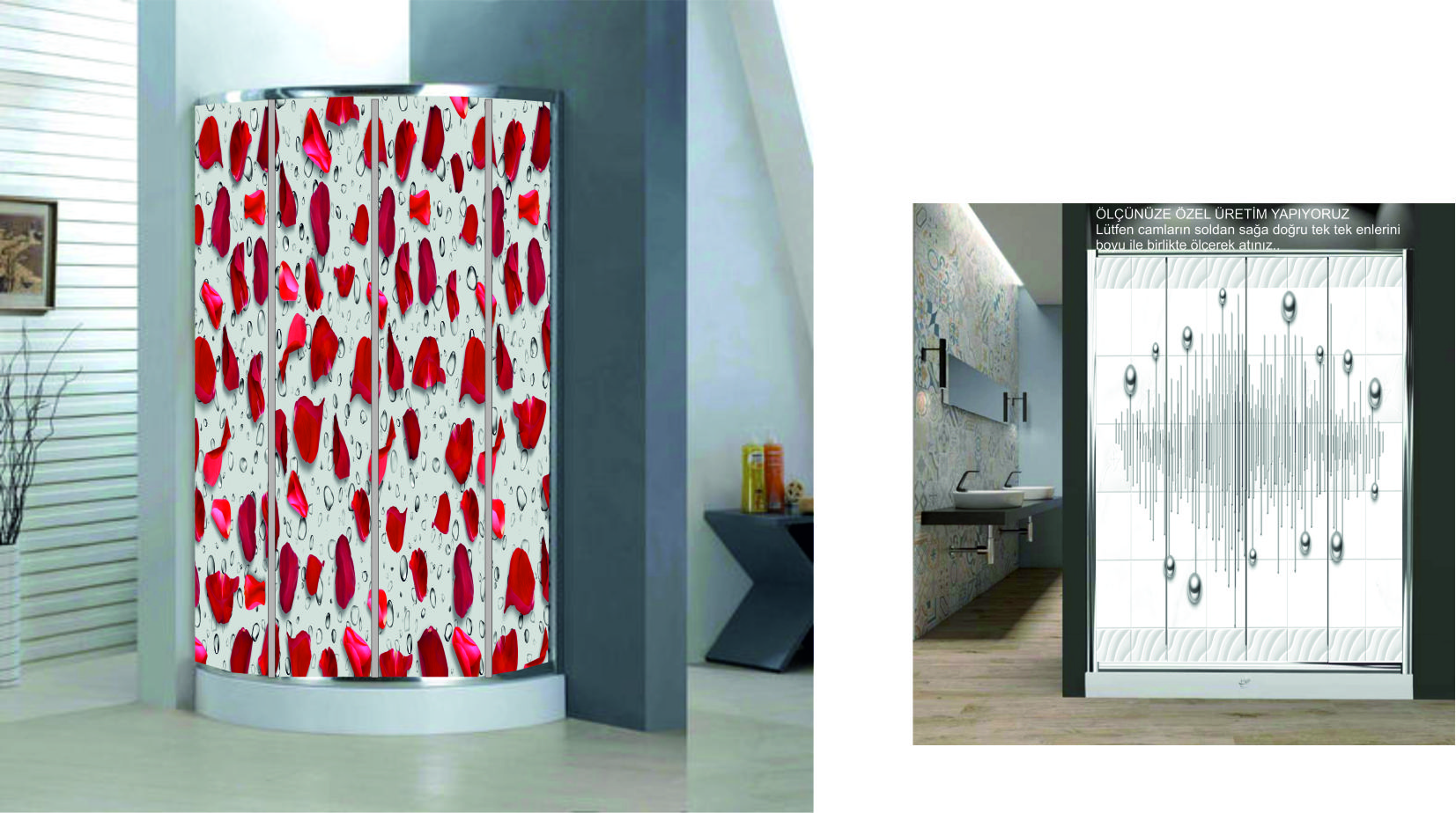 Duşa kabin camlarınız seçenekteki ölçülerden çok farklı ise bilgi ve destek hattımızla iletişime geçiniz