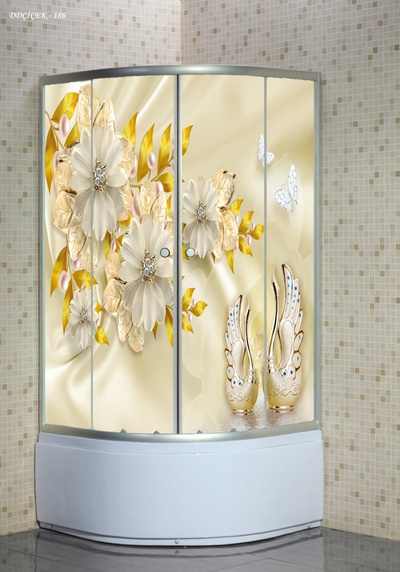 Kendinden yapışkanlı 4 parça duşakabin kaplamamız silinebilir ve suya dayanıklıdır